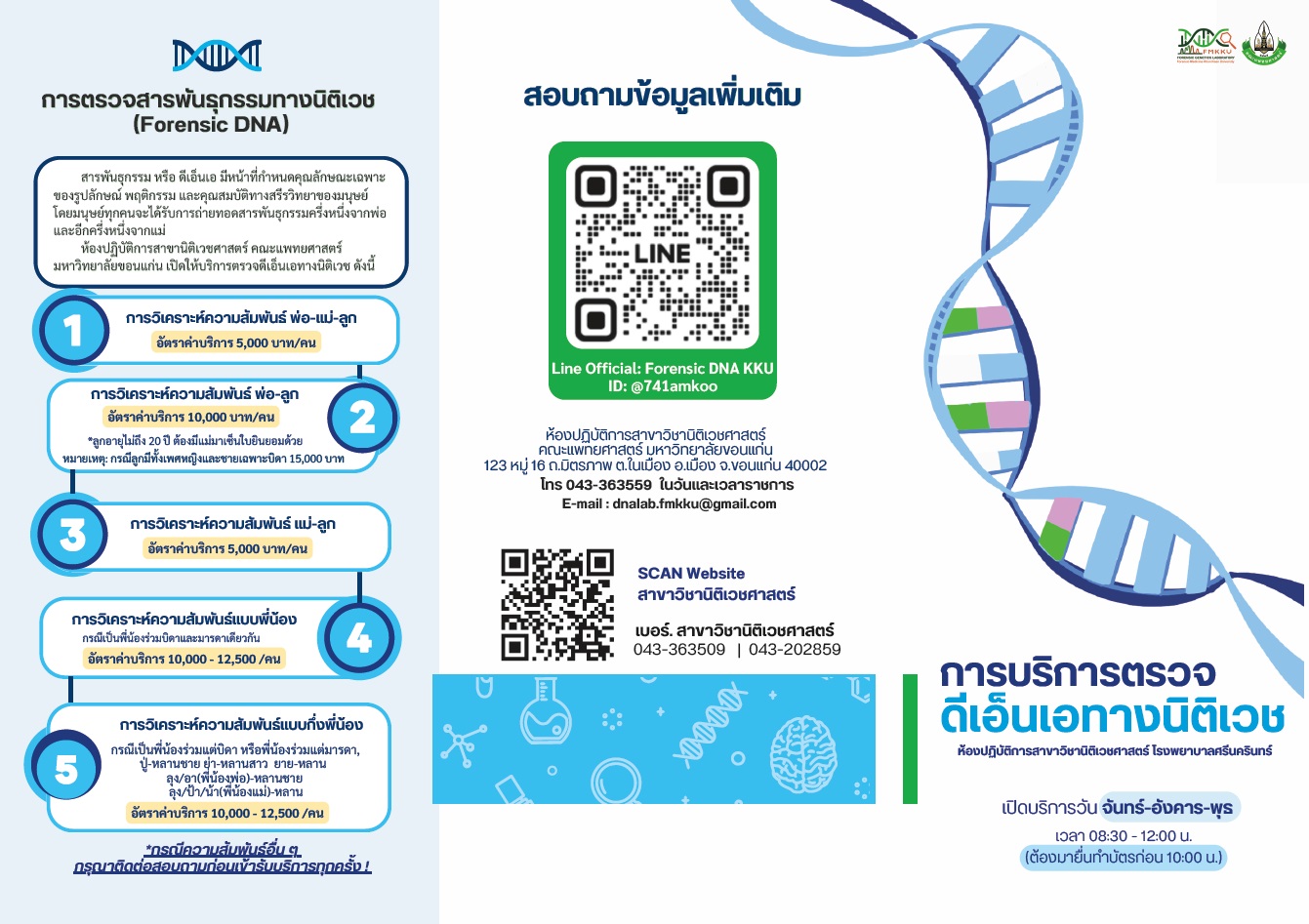 November 11, 2024 / Last updated : October 14, 2025 forensic การขอใช้บริการ การบริการตรวจดีเอ็นเอทางนิติเวช การบริการตรวจดีเอ็นเอทางนิติเวช โหลดเอกสารคลิก การตรวจสารพันธุกรรมทางนิติเวช