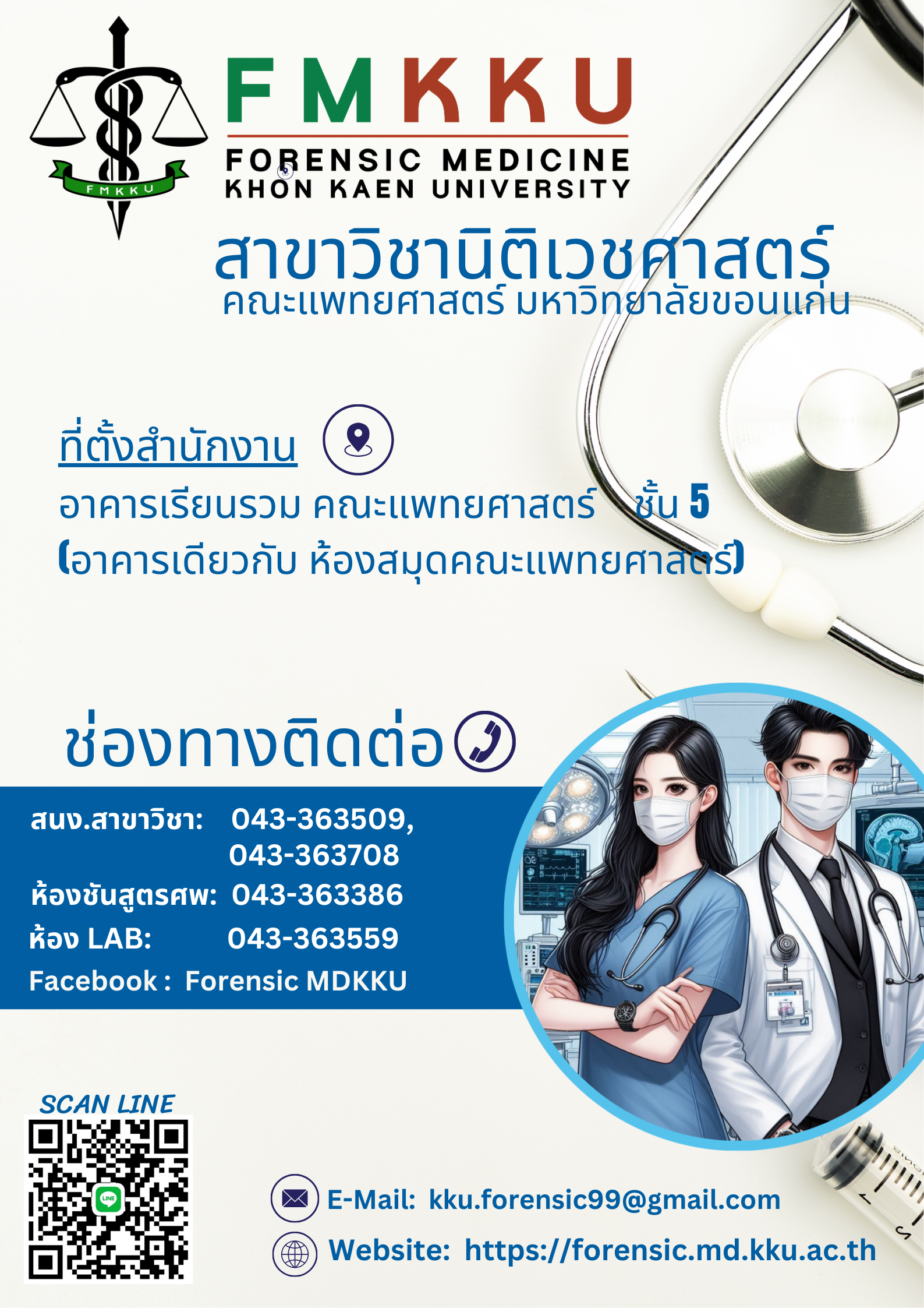 November 11, 2024 / Last updated : August 26, 2025 forensic เกี่ยวกับสาขาวิชา ติดต่อเรา Facebook : Forensic MDKKU คลินิกนิติเวช การชันสูตรพลิกศพ แบบประเมินความพึงพอใจ ใบขอตรวจแอซิดฟอสฟาเตสและตัวอสุจิ การส่งตรวจแอซิดฟอสฟาเตสและตัวอสุจิ